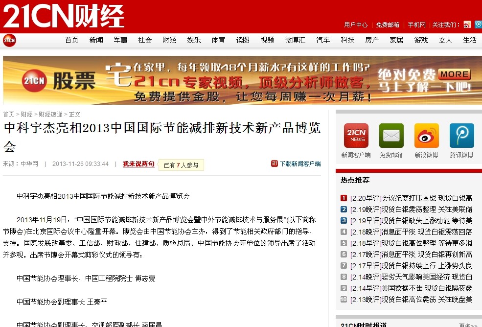中科宇杰亮相2013中國國際節(jié)能減排新技術(shù)新產(chǎn)品博覽會