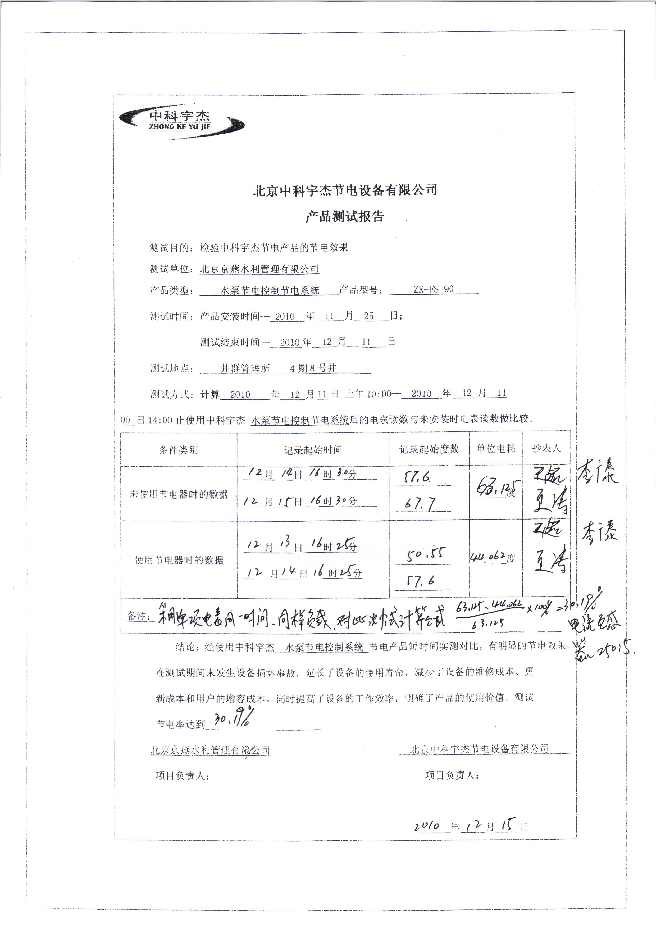 經(jīng)安裝調(diào)試驗收,節(jié)能效率達(dá)到30%,投資回報期6個月,按質(zhì)保十年計算,此項節(jié)能工程能為北京京燕水利管理有限公司帶來380萬人民幣以上的直接效益。